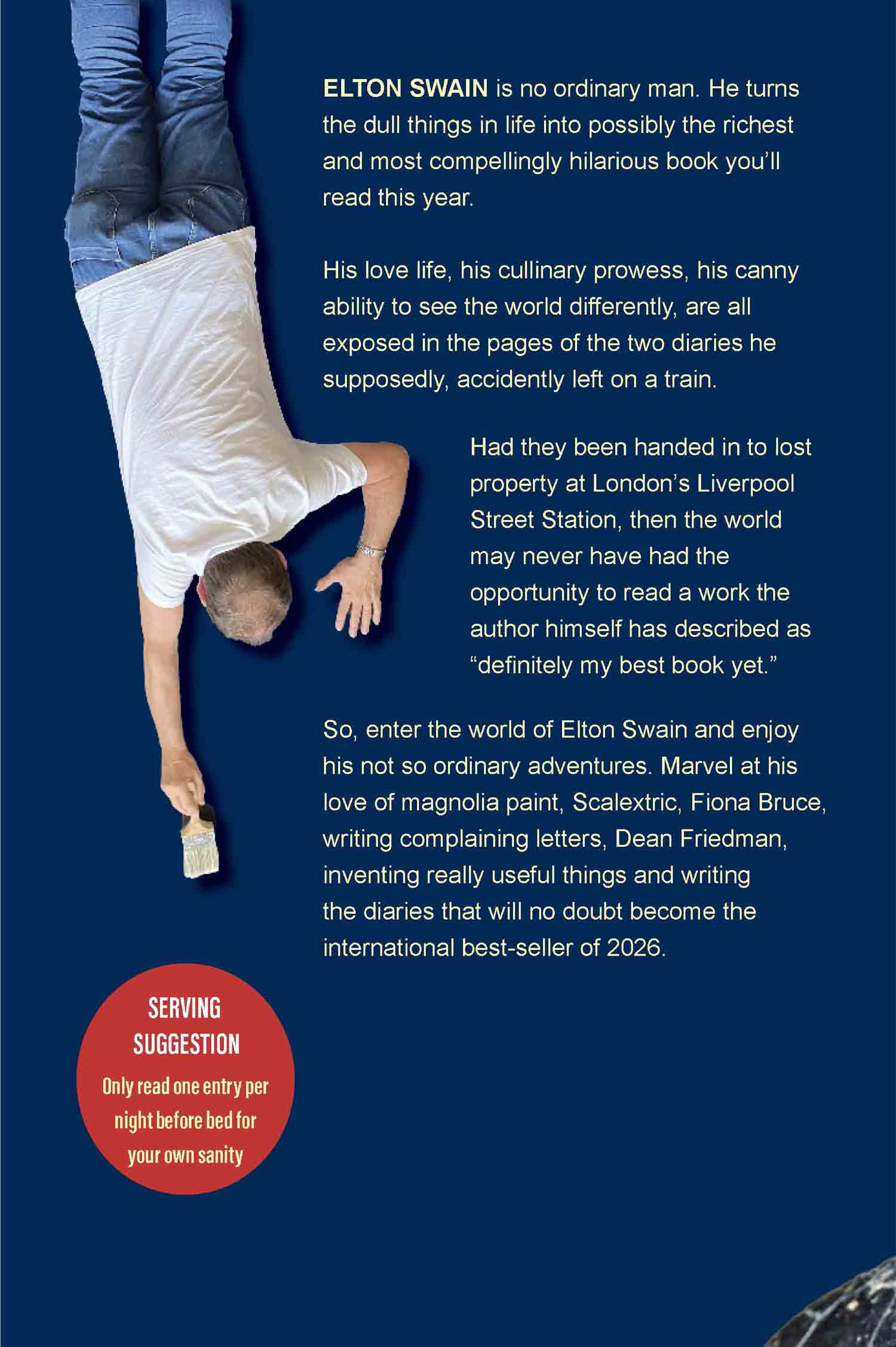 The name of ELTON SWAIN is an anagram of… guess who? But I’m never going to admit to some of the escapades he gets up to… like, for instance, making toothpicks from his toe-nails, re-gifting hardly-worn lingerie from one old girlfriend to a new one (yuch!), and having an on-line argument with a well-known budget airline about their lack of apostrophes on their safety instructions. Michael O’Leary should pay more attention…